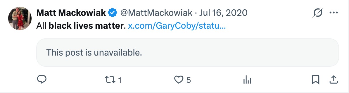 By the next month, July 2020, Mackowiak was posting “All black lives matter” on his Twitter page.