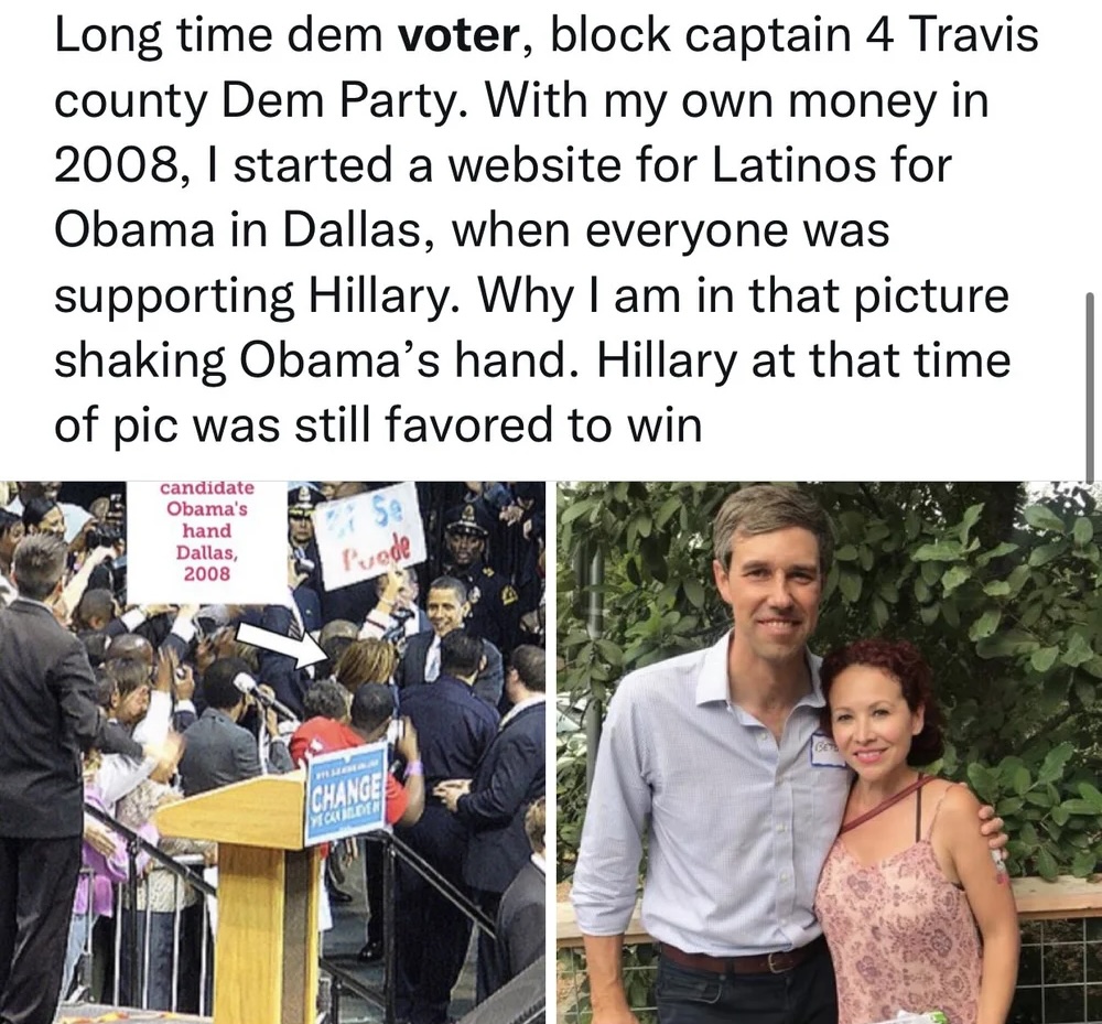 She writes: “With my own money in 2008, I started a website for Latinos for Obama in Dallas, when everyone was supporting Hillary.”